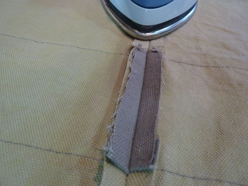 16. Fold back the top raw edge of the lining ½” all around. Press well.