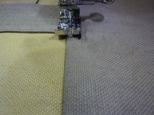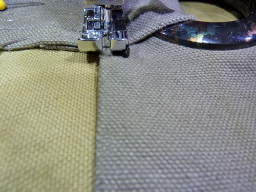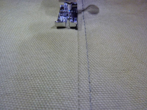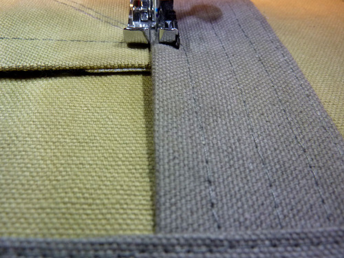 7. Flip over each panel and topstitch ¼” to the left and ¼” to the right of each seam. Again, make sure your machine is threaded with the correct topstitching thread and that your stitch is slightly lengthened.