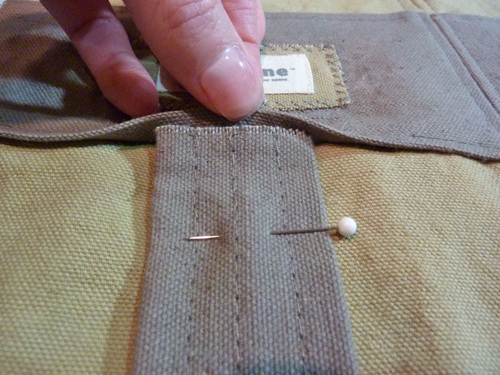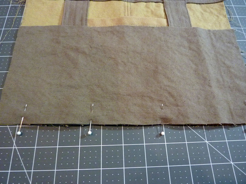 7. Pin the pocket in place along both sides and across the bottom.