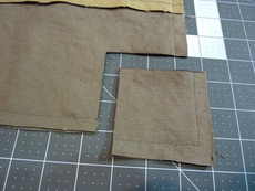 1. From the fabric for the main bag exterior panels and the exterior pockets (Khaki Canvas in our sample), cut the following: