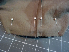 5. Pin in place all around, adjusting the folds as necessary to keep everything even all around.