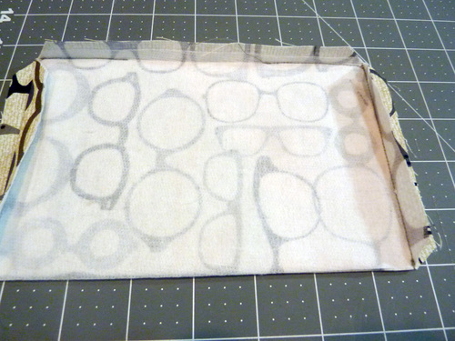5. Clip the corners and turn each pocket right side out through the bottom opening. Gently push out the corners so they are nice and sharp. A chopstick, long knitting needle or point turner works well for this. Fold in the raw edges of the pocket opening so they are flush with the sewn seam. Press the pocket flat.