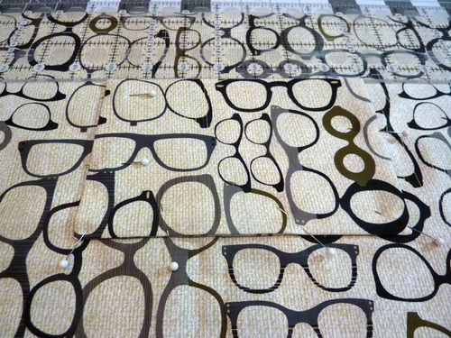 • 1 yard of 44″+ wide standard quilting weight cotton for the bag’s lining, the exterior pockets’ lining, and the lining pocket; we originally used Urbanista by Michael Miller Fabrics, Neutral 20/20 Glasses