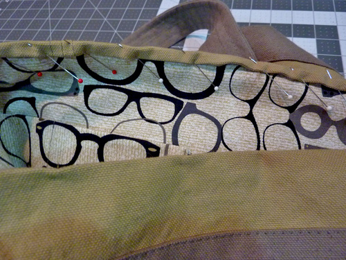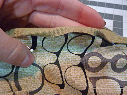 4. Slip the top folded edge of the lining under the folds of the top of the exterior bag.
