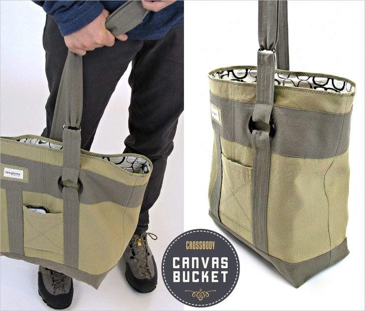 Canvas Crossbody Bucket Bag
