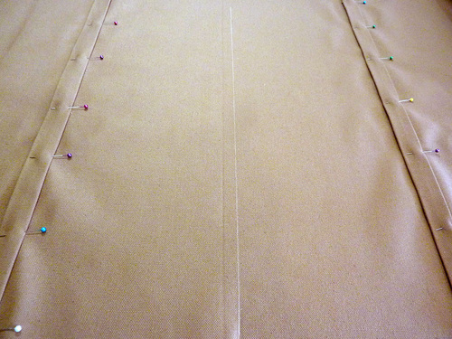 - Unfold so the two crease lines are visible and so you can pin from bottom to top to create full side seams.