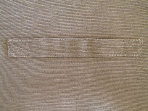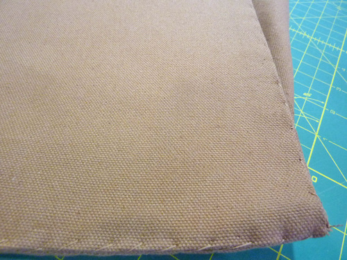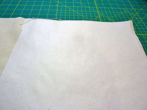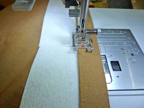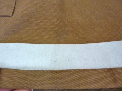 NOTE: If you used the 60” canvas we recommended, the selvedges are likely to be neatly finished, so no additional seam finishing is required. If you have a raw cut edge, we recommend finishing the seam allowance with your favorite method. We have a four-part tutorial on Machine Sewn Seam Finishes if you don’t have a favorite yet. - Find the four 2⅜” x 14¾” pieces of heavyweight fusible interfacing.