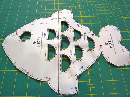 NOTE: Because the two appliqué templates are different heights, this means the bottom of the handle will align with the top of the Fish template and the top of the handle will align with the top of the Seahorse template. - Pin each handle in place.