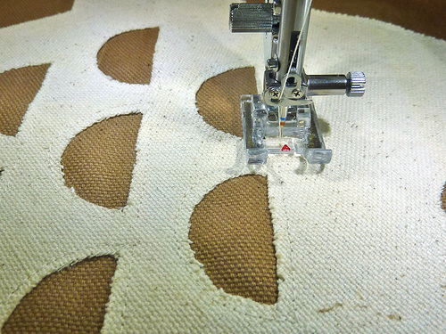 - Go slowly and carefully around each opening, stopping, with your needle in the down position, to adjust and pivot as necessary.