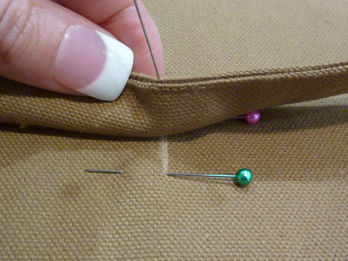 - On the remaining three sides, you will hand stitch the lining panel to the base panel seam allowances.
