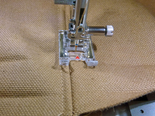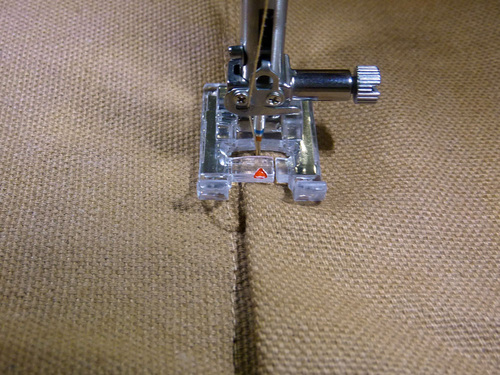 - Make sure the machine is threaded with thread to best match the exterior fabric in the top and bobbin. Lengthen the stitch.