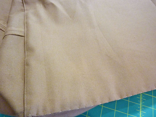 - Similarly to how you handled the top of the exterior, make a hem along the top raw edge of each lining panel.