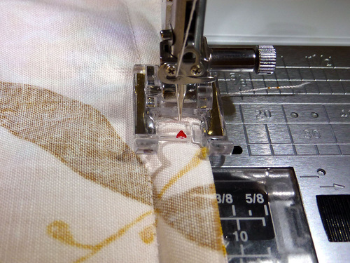 - Stitch the first side from bottom to top, using a ½” seam allowance.