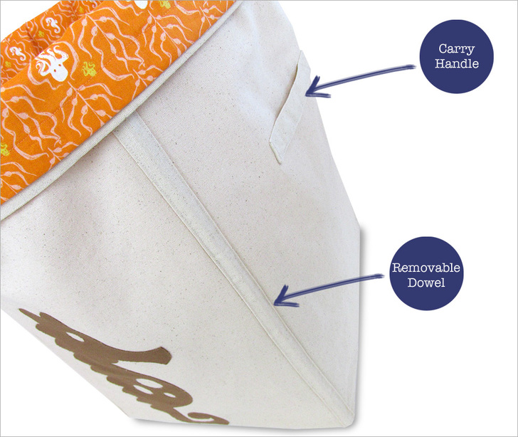 Although designed as a hamper for laundry, you could also use it to store off-season clothing, soft toys, even yarn or part of your fabric stash. A handle on each side lets you drag or carry it from room to room.