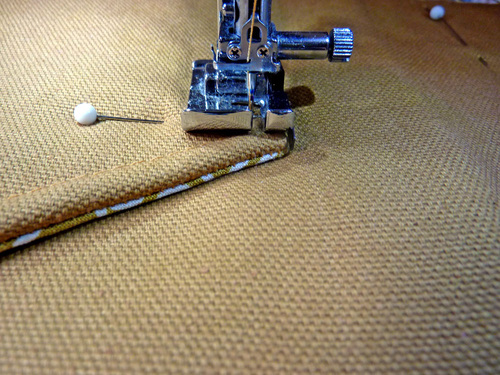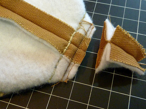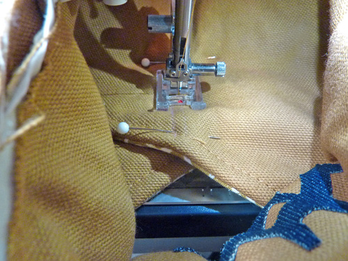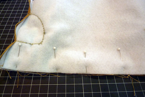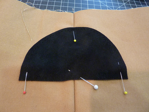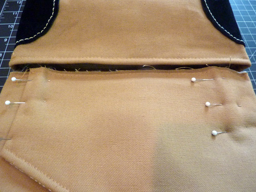 - Hand baste in place all around and remove the pins. You want the joint secure yet flexible for the final seam.