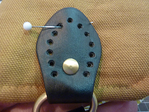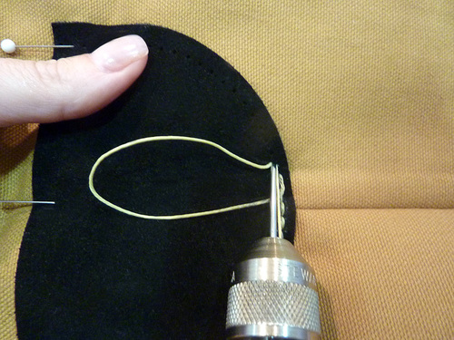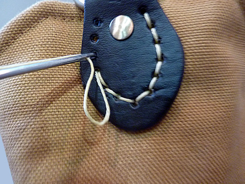 - Using The Speedy Stitcher sewing awl and its standard waxed thread, stitch each end of the handle in place.