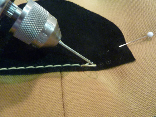 - Along the straight cut edge of the patches, you will need to mark stitch holes to match the pattern of the pre-drilled holes.