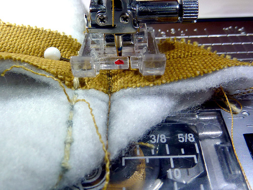 - Stitch the center seam first, flattening it under the needle as you go. You are following your original drawn guide line.