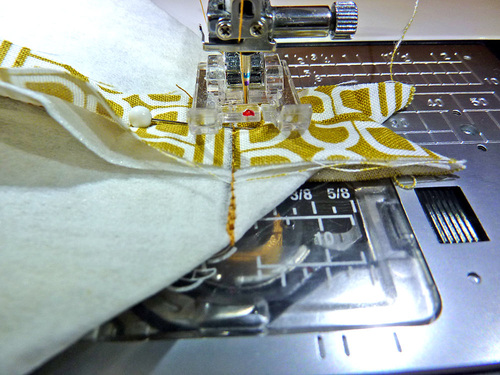 - Using a ½” seam allowance, stitch both sides and across the bottom, pivoting at the corners.