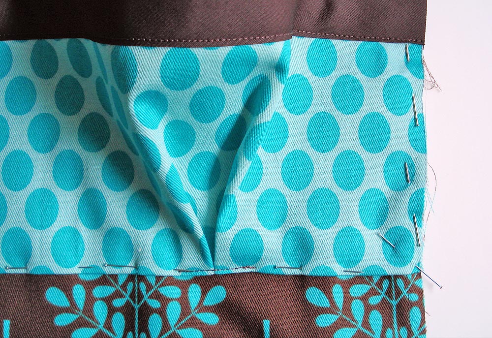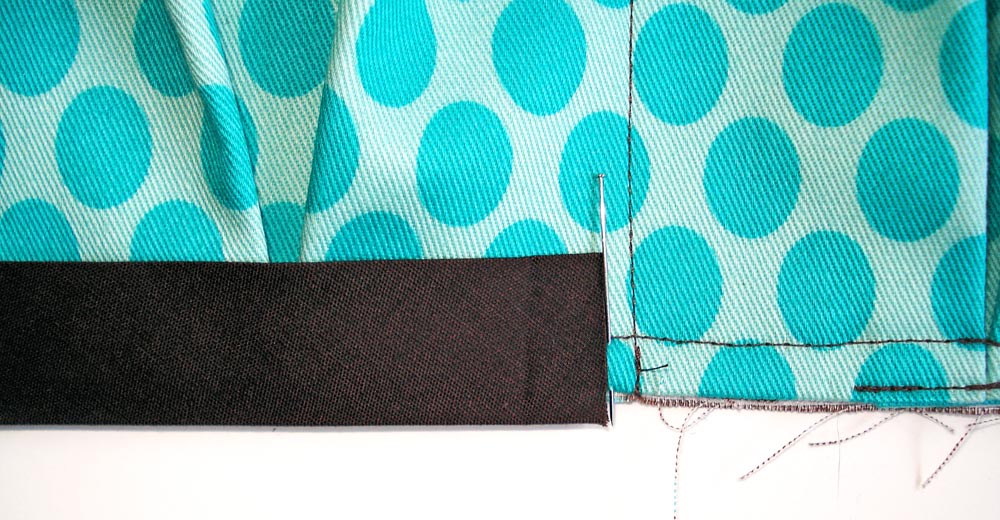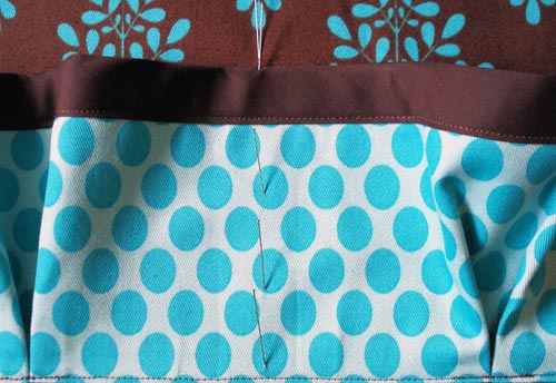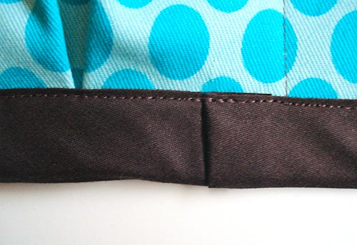 - When you reach the stitched down pleats along the bottom folded edge, be sure to edgestitch directly over this small line of stitching so your visible seam is nice and neat.
