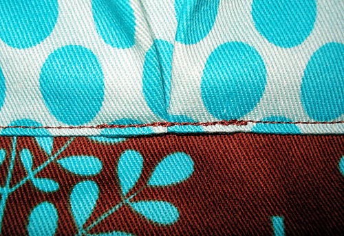 NOTE: As mentioned above, we used brown thread throughout our project. If you prefer, you could change the thread to best match the pocket panel fabric.