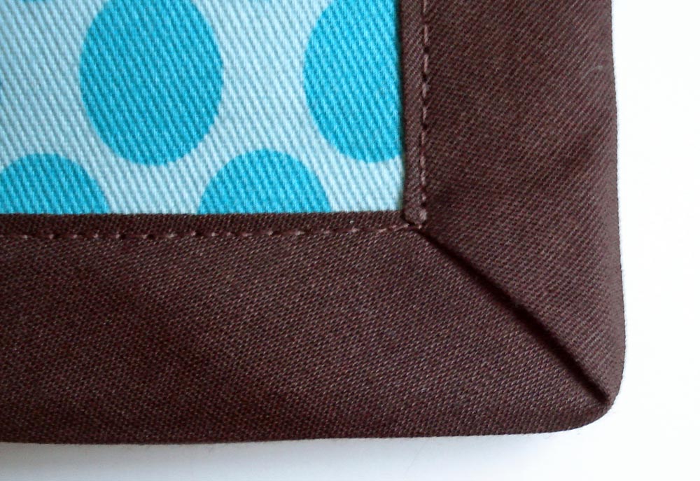- Be sure to neatly fold the binding into a diagonal at each corner.