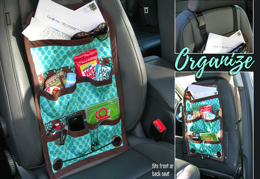 ROOOOOAAAAADDDDD TRIIIIPPPPP! It’s the perfect time to load up your family and friends and hit the open road. But first you have some stuff (aka crap) you need to organize for the trip: tunes, cell phone, scribbled notes, tickets, pens, snacks, your wallet, etc., etc., etc. If you skip this important organizational step, here’s what will happen: You are driving, keeping your eyes on the road (of course), and you reach out to grab something from the pile of stuff (crap), but can’t quite reach it/find it without rear-ending the truck in front of you. Instead… the needed item falls off the seat, lodging somewhere between the seat and the door. Feel free to jump in here and repeat the words you shout in your car.
