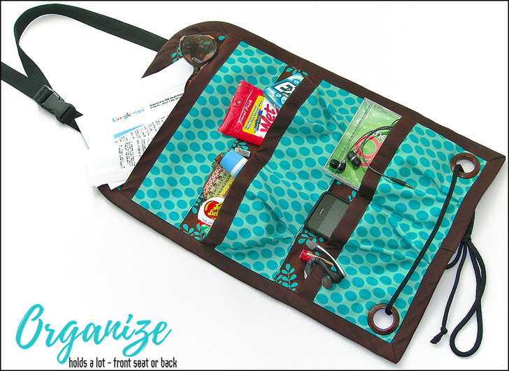 I made one of these similar to the pic and it turned out awesome. You are absolutely correct – it’s such a great organizer in the car. Instead of my stuff being all over the passenger seat, it’s all neatly tucked in pockets an easy reach away.