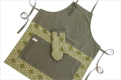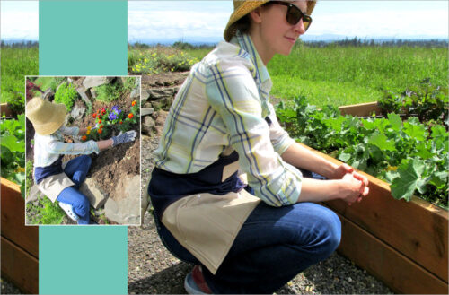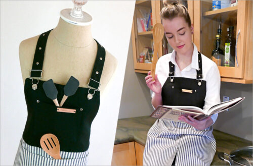 This apron’s design has a classic style that works year ’round. The FREE machine embroidery designs were originally designed with a summer Flower Power vibe. They get a whole new look in updated rustic tones set against a stunning stripe.