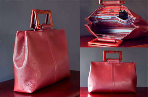 Soft, supple faux leather is much easier to sew with than the real thing. Use it for our elegant handbag โ€“ clean and casual enough for the office, but still posh, pretty, and compact enough for a night on the town.