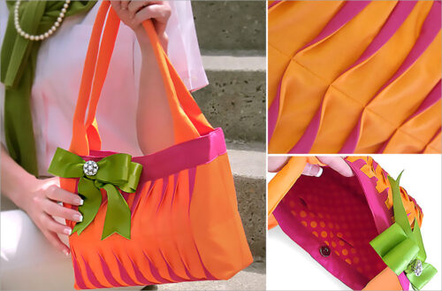 Creativity is in the bag! Wave tucks are a fun way to add a textural focal point to any size bag. Donโ€™t panic; this technique doesnโ€™t require a bathing suit or a surfboard – all you need is your sewing machine and a desire for style!