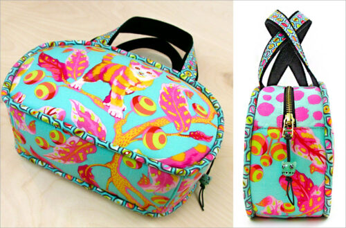 We used Tabby Road by Tula Pink, a purrrrfect collection to flaunt your feline love, but you get to choose your own best fabric combo. Our free pattern download gives your bag the unique curved shape with its flat bottom.