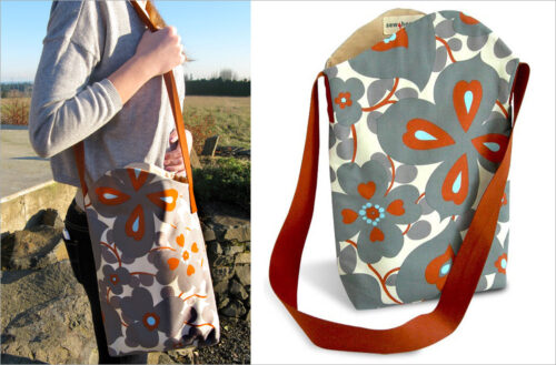 Fast and easy construction, but without sacrificing any style! You can make this beautiful bag in an afternoon while practicing your straight seams, topstitching, and boxed corners. Mix a bold solid with a pretty print.