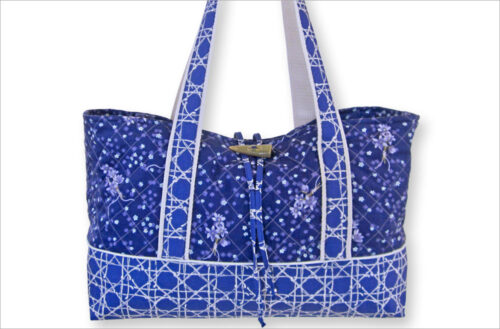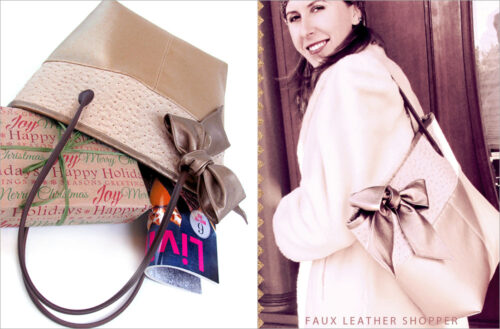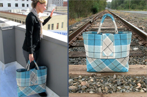 This tote is designed in a shopper style, which means it’s a generous size that opens wide at the top and can be slung over your shoulder or carried by hand. We recommend easy-to-sew faux leather and vinyl for the sleek look.