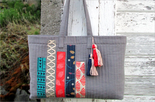 Our designer tote uses beautiful Renaissance Ribbons to their best advantage: as focal point embellishments against a solid fabric. We include detailed instructions and lots of helpful photos to walk you through every step.