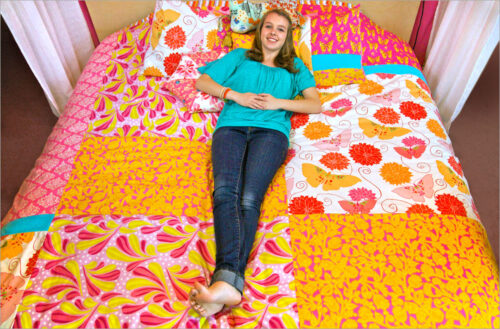 The bed is the focal point in most room makeovers. Our duvet is made up of 12 different cuts from 7 fabric designers, cleverly sized into just 3 simple patchwork panels. Cuts given for king, queen + twin sizing.
