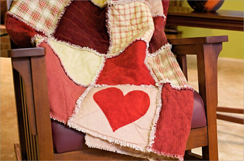 Wrap up your favorite someone in this snuggly rag quilt with its special “secret admirerโ€ heart appliquรฉ. A rag quilt is sewn together so the seams show on the outside. After washing and drying, the seams begin gently fray or rag.