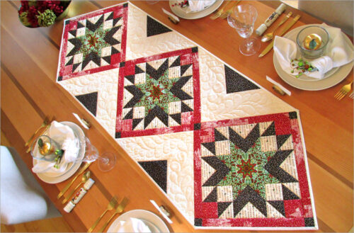 A bed runner is aย decorative throw for the foot of the bed that helps protect a fancier full-size quilt or bedspread. Sit on it or stretch out and place your feet on it. We used oursย to show off some very pretty patchwork and quilting.