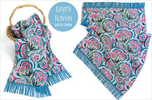 Do you usually turn to quilting cottons or fleece for a throw? Give linen and rayon a try! This lightweight yet warm throw has an absolutely amazing drape. The finishing touch is the swing and sparkle of chainette fringe.