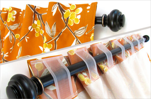 The cafe curtain is designed to hang at a window’s halfway point, covering up the bottom but letting in light from above. It’s a great solution that gives you privacy plus sunshine. Curtain panels are a perfect beginner project.