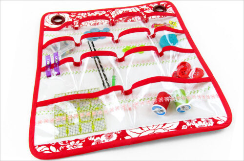 Corral important items with this clever clear-view caddy. Fourteen, see-through vinyl pockets allow you to store stuff but still see it so you can quickly grab exactly what you need. For the sewing room or any room.