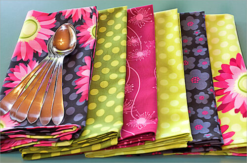 Cloth napkins are more beautiful, more absorbent, and more green. These nifty napkins use a technique for building patchwork strips called a strata. So colorful, it will make breakfast, lunch or dinner feel like a party.