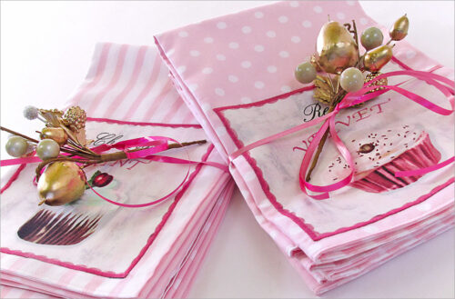 Need a last minute gift? How about a super simple project for a beginning sewer? This kitchen linens classic gives you two projects in one: a set of napkins and a matching half apron in 100% cotton toweling. Pretty and popular!