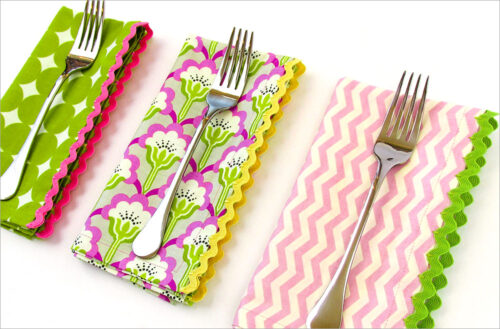 Yay for the cloth napkin! Our floating rick rack technique lets you fancy-up a standard cloth napkin as a gift or just for everyday. Itโs fun and easy, and you may already have everything you need on hand to whip up a stack in no time.