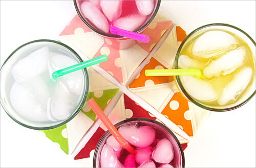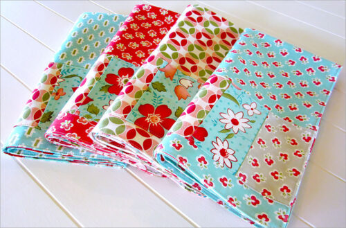 A pretty option for dining indoors or out. Cut, layer, stitch, serve (shaken not stirred). Itโs just that easy, and as cute and colorful as can be. Super fast and a great option for scraps โ especially leftover charm squares.
