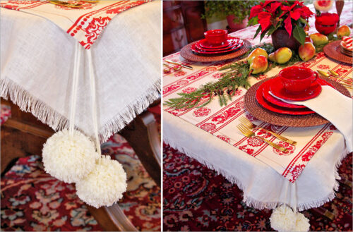 A departure from a traditional tablecloth or runner, a Table Throw or Table Square offers more flexibility for how it can be placed as well as the table it can fit.ย The Double Star design is a holiday favorite. Includes a pattern set.