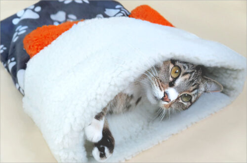 Itโs a a cozy little cave โ a perfect snuggling, snoozing, and hiding place for your favorite feline. Sized for a kitten or small to medium cat, up to apx. 9 pounds; we also have cut sizes for a medium to large cat, apx. 10-16 pounds.