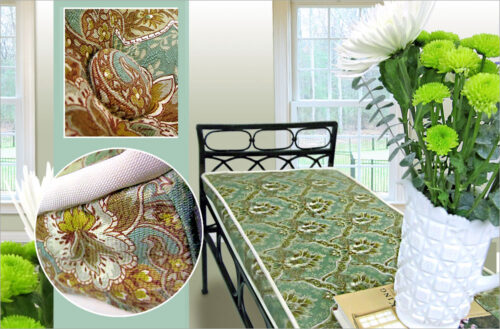 Create a beautiful chair cushion with accent piping and nice square corners but without any stress! There’s no side gusset; we use easy box corners instead. And the piping is attached as individual strips, so no tricky corners.