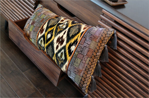 Our striking lumbar pillow allows you to bring together a beautiful blend of bold upholstery fabrics with several classic home dรฉcor finishes, like tassels, piping, and button closures. For this project, the goal is to โmix it up!โ