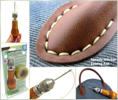 We love this unique hand stitching tool. Our step-by-step tutorial shows how it can quickly attach one item to another as well as create an interesting line of stitching as a decorative accent. Great for bag handles!